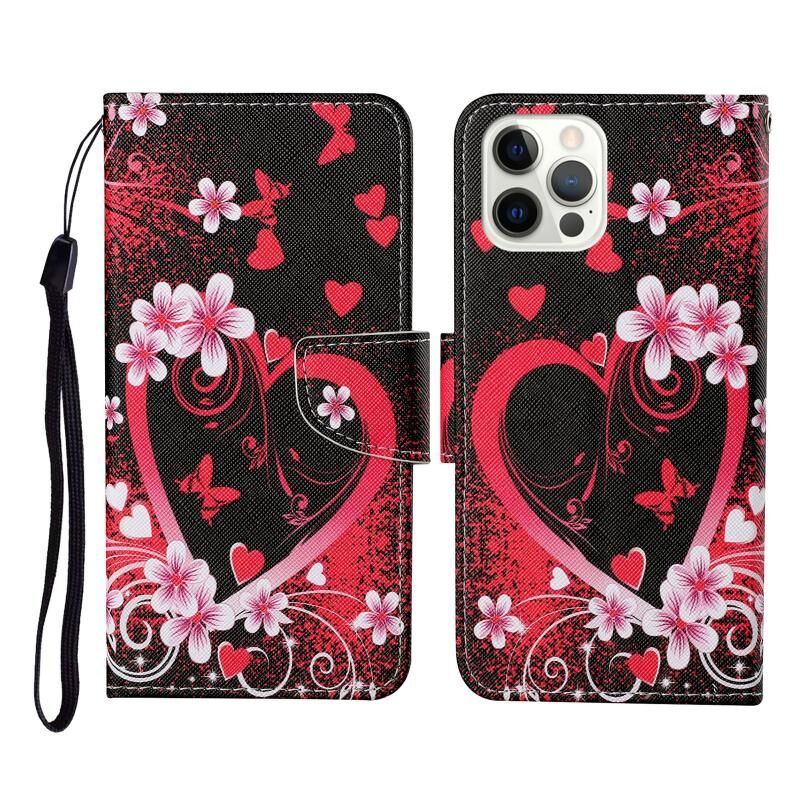 Θήκη τηλεφώνου δερμάτινη οριζόντιας αναδίπλωσης με σχέδιο έγχρωμης ζωγραφικής για iPhone 13 Pro Max (Κόκκινη Καρδιά)