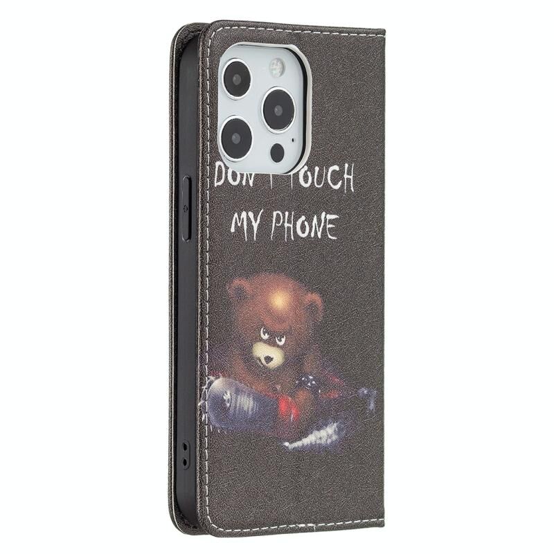 For iPhone 13 Pro Max Colored Drawing Pattern Invisible Magnetic Horizontal Flip PU Leather Case with Holder & Card Slots & Wallet (Bear)