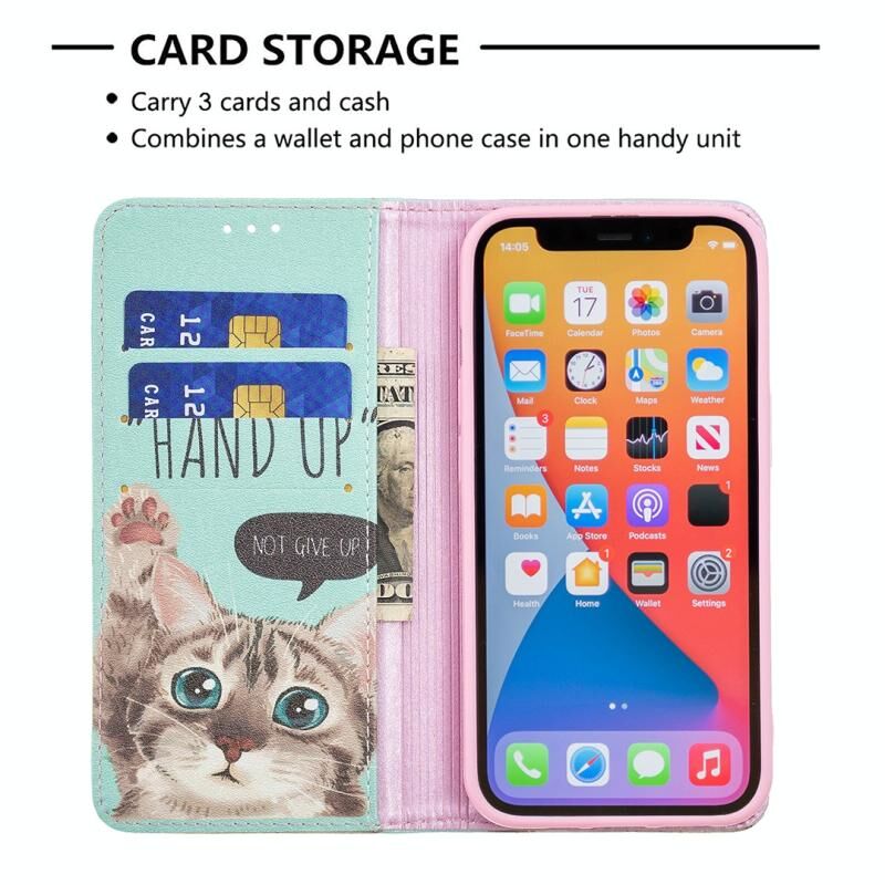 For iPhone 13 Pro Max Colored Drawing Pattern Invisible Magnetic Horizontal Flip PU Leather Case with Holder & Card Slots & Wallet (Cat)