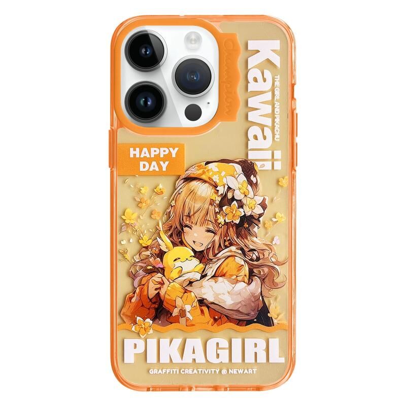 For iPhone 13 Pro Max Colorful Wave Circle Creative Pattern Phone Case(Orange Butterfly Flower Girl)