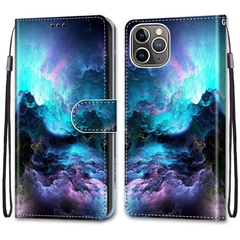 Θήκη για iPhone 13 Pro Max με πολύχρωμο σχέδιο, υφή σταυρού, οριζόντια αναδίπλωση από δερματίνη PU με βάση & θήκες για κάρτες & πορτοφόλι & κορδόνι (Πολύχρωμα Σύννεφα)