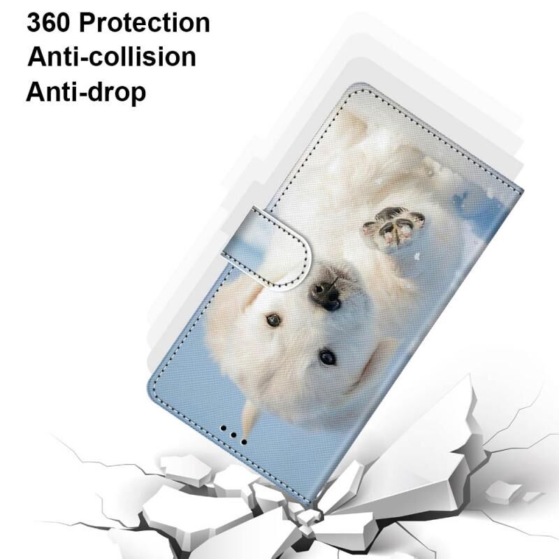 Θήκη για iPhone 13 Pro Max με πολύχρωμο σχέδιο, υφή σταυρού, οριζόντια αναδίπλωση από δερματίνη PU με βάση & θήκες για κάρτες & πορτοφόλι & κορδόνι (Snow Puppy)
