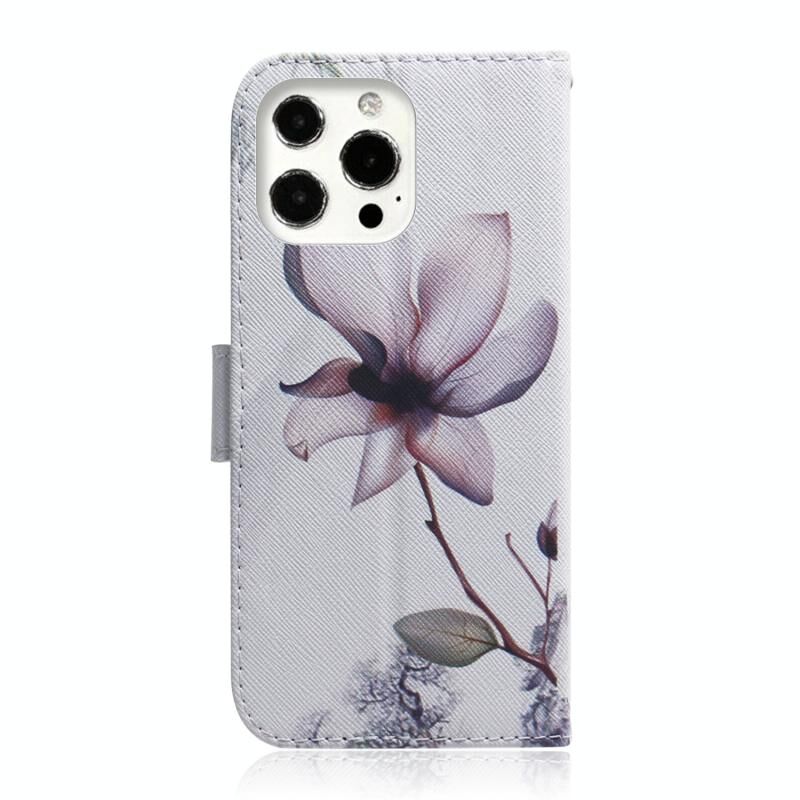 For iPhone 13 Pro Max Coloured Drawing Horizontal Flip Leather Case, with Holder & Card Slots & Wallet (Magnolia Flower)