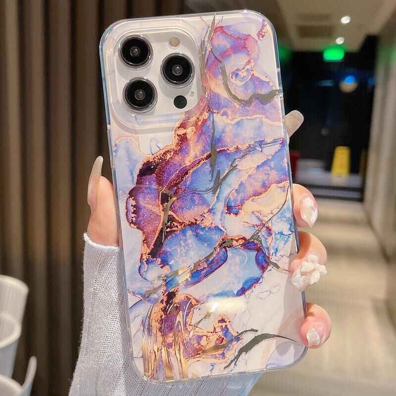 Θήκη τηλεφώνου με γυαλιστερό μαρμάρινο σχέδιο για iPhone 13 Pro Max (Ροζ Χρυσό)