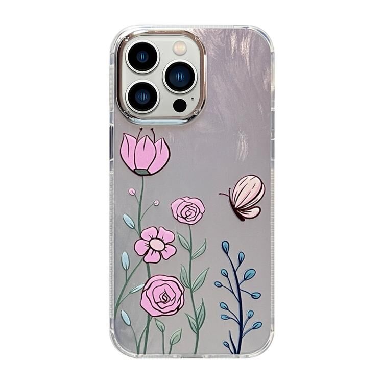 For iPhone 13 Pro Max Cooling Flash Feather TPU + PC Phone Case(Butterfly Flowers)