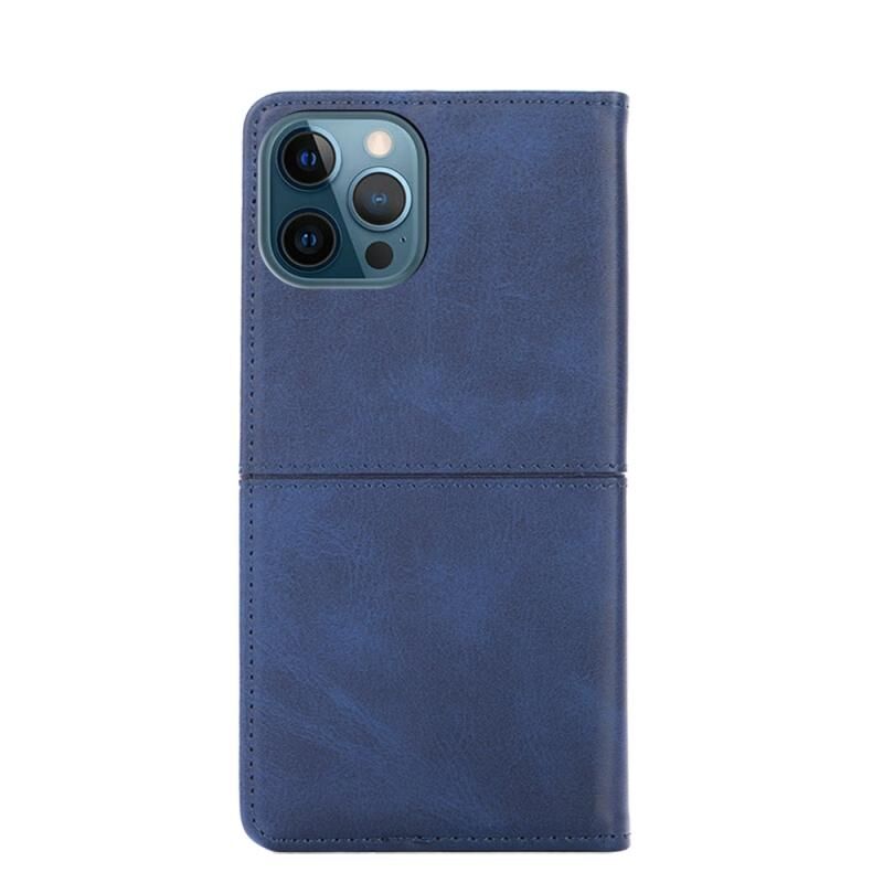For iPhone 13 Pro Max Cow Texture Magnetic Horizontal Flip Leather Case with Holder & Card Slots (Blue)