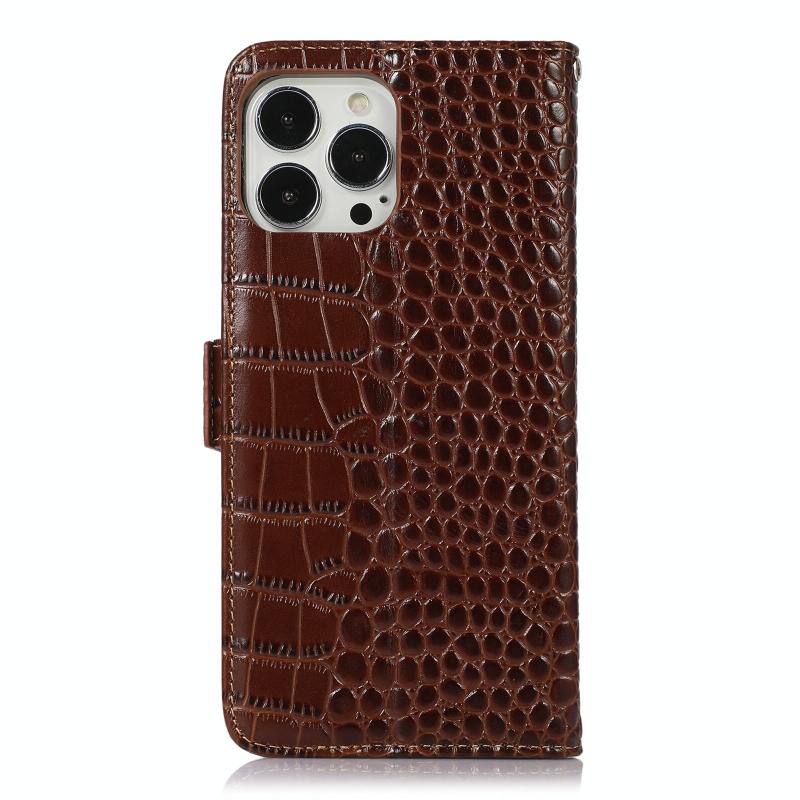 For iPhone 13 Pro Max Crocodile Top Layer Cowhide Leather Phone Case (Brown)