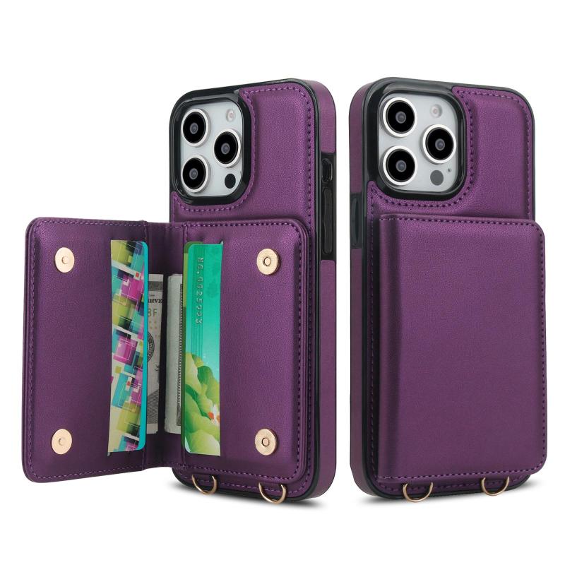 For iPhone 13 Pro Max Crossbody Dual-buckle Wallet RFID Back Leather Phone Case(Dark Purple)