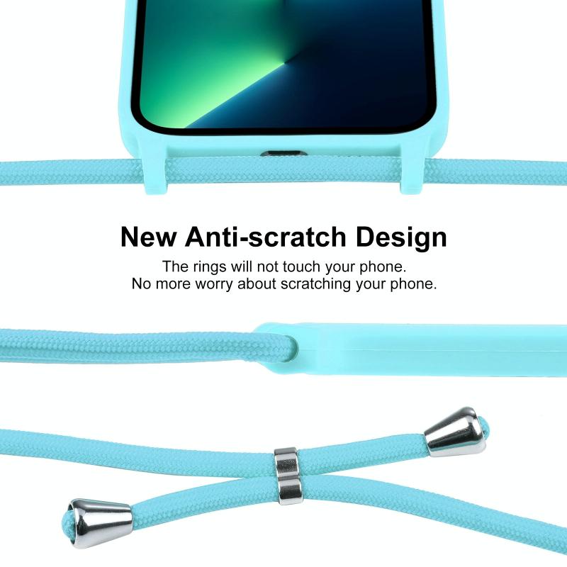 For iPhone 13 Pro Max Crossbody Lanyard Liquid Silicone Case(Ice Blue)