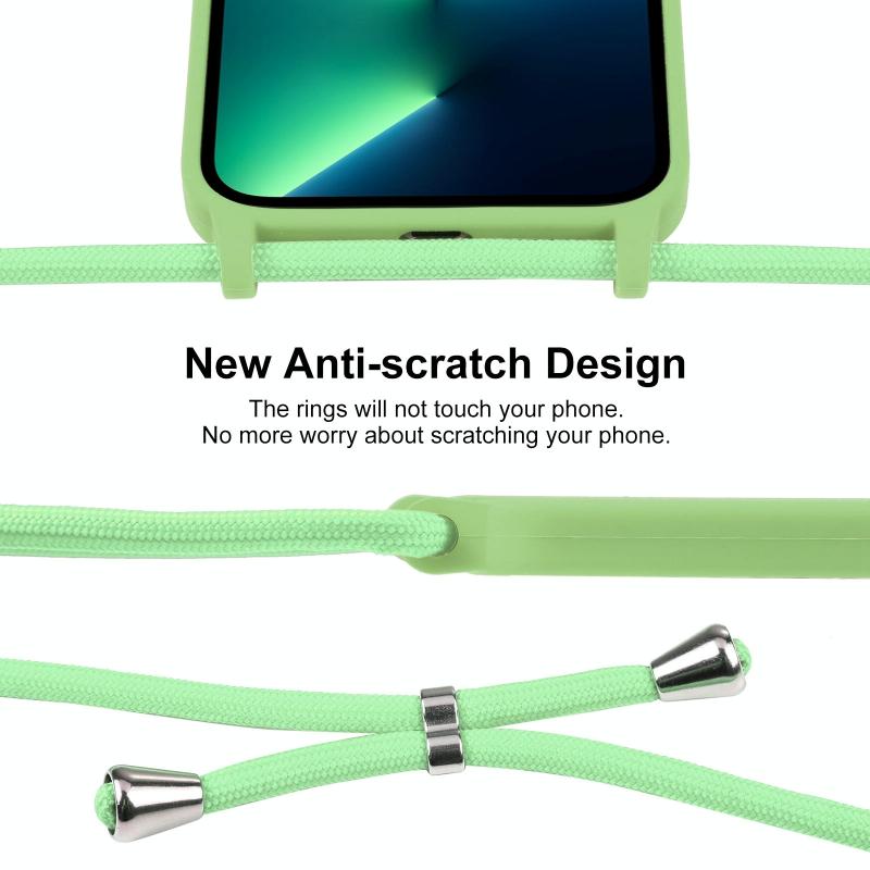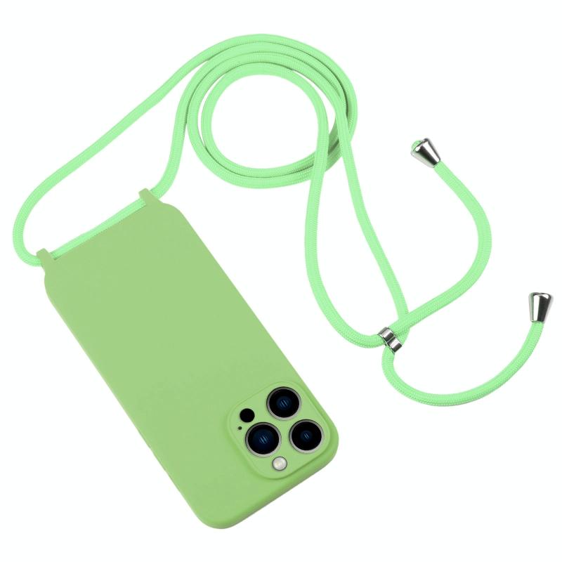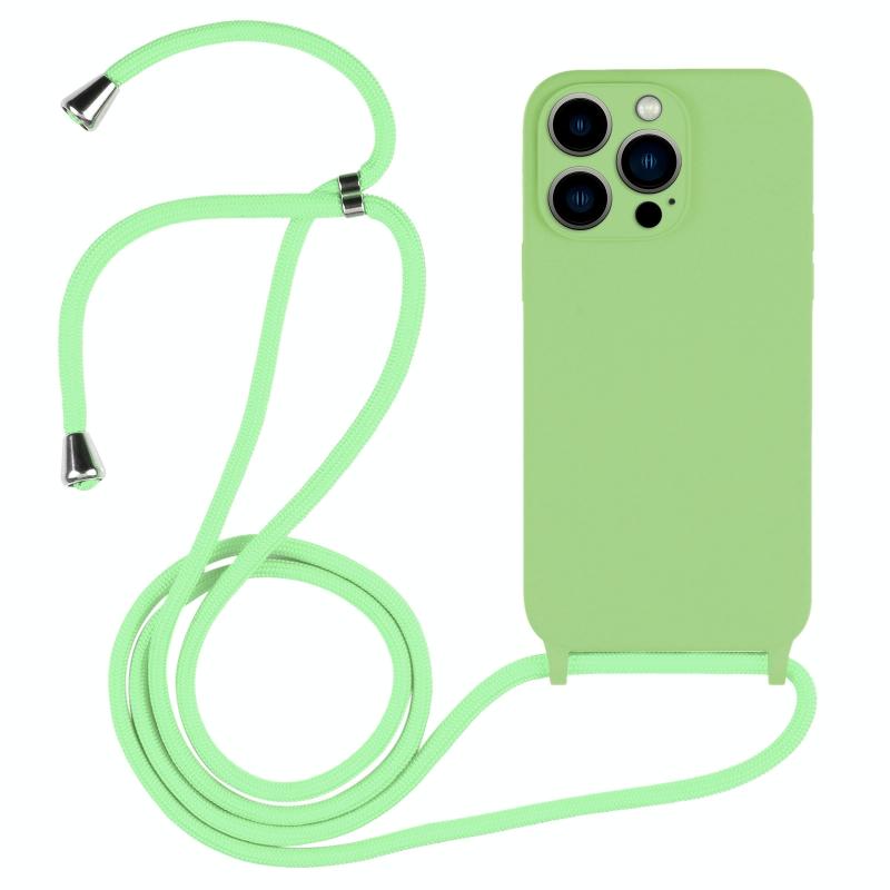 For iPhone 13 Pro Max Crossbody Lanyard Liquid Silicone Case(Matcha Green)