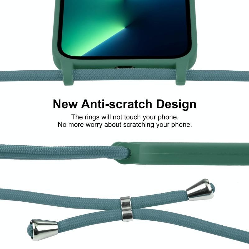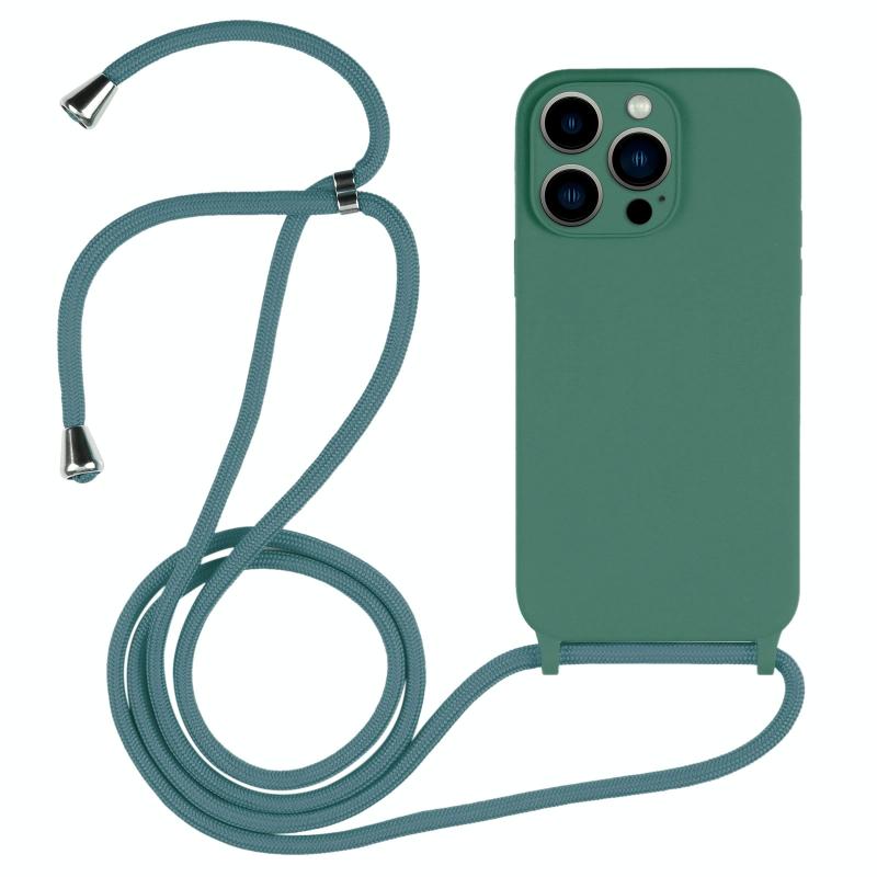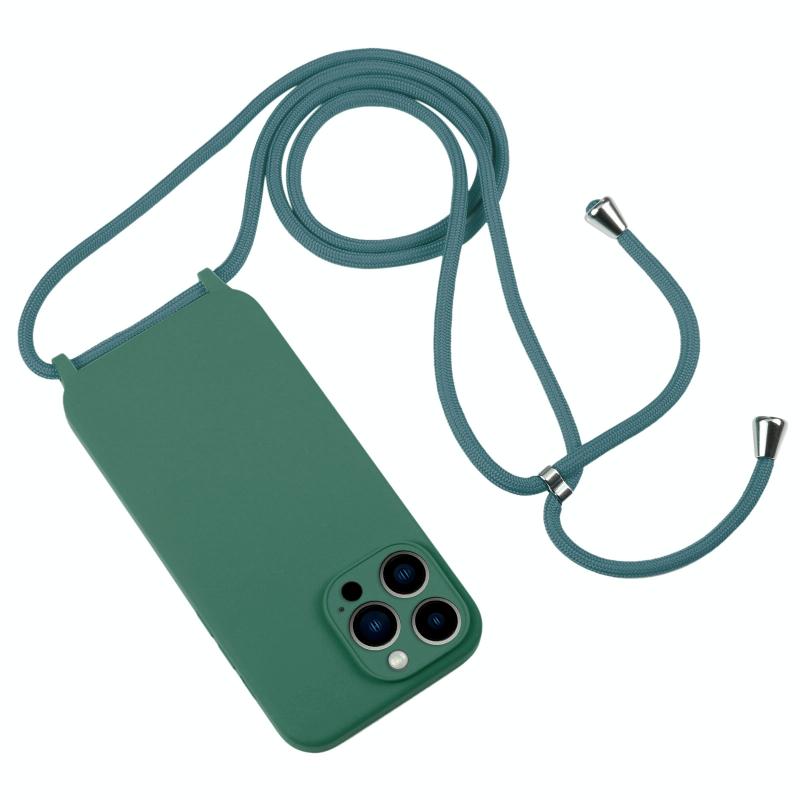 For iPhone 13 Pro Max Crossbody Lanyard Liquid Silicone Case(Pine Needle Green)