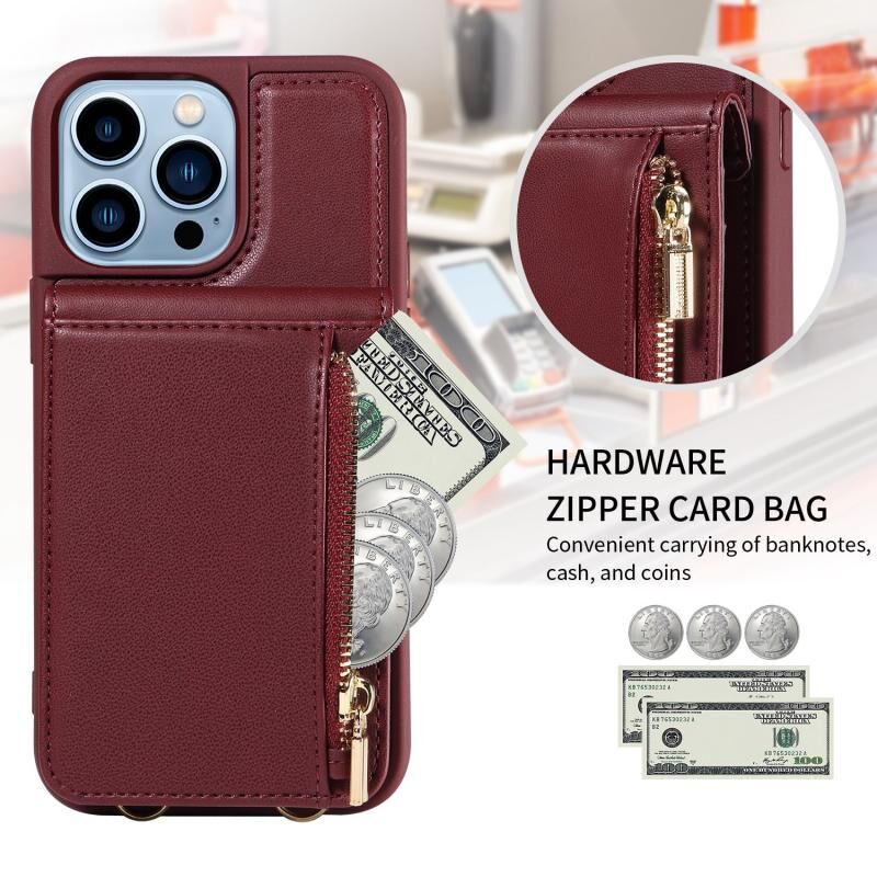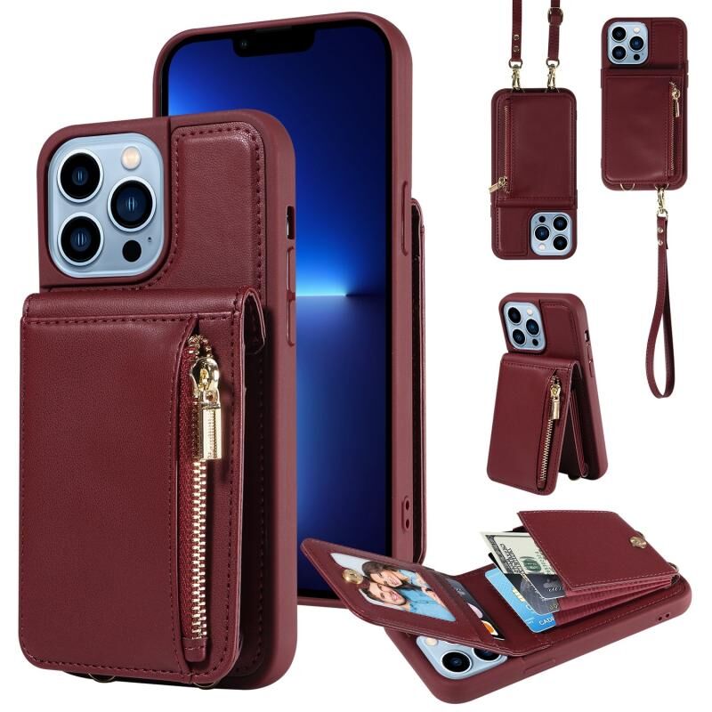 For iPhone 13 Pro Max Crossbody Lanyard Zipper Wallet Leather Phone Case(Wine Red)