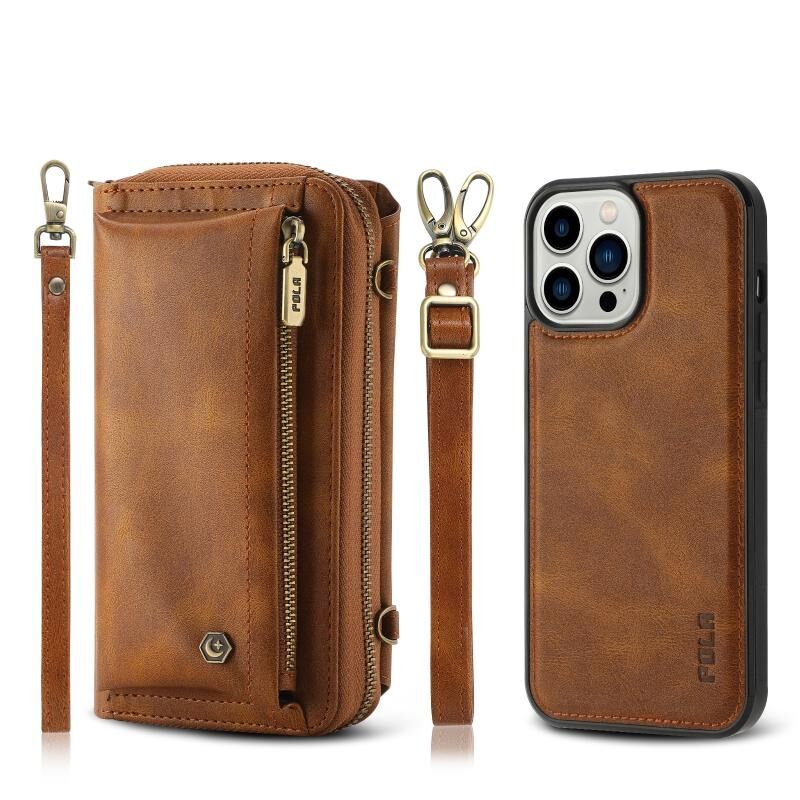 Θήκη τηλεφώνου δερμάτινη πολλαπλών λειτουργιών με φερμουάρ και λουρί για iPhone 13 Pro Max (Κόκκινη)