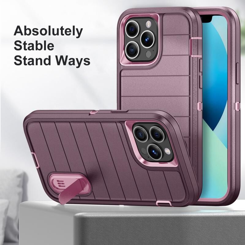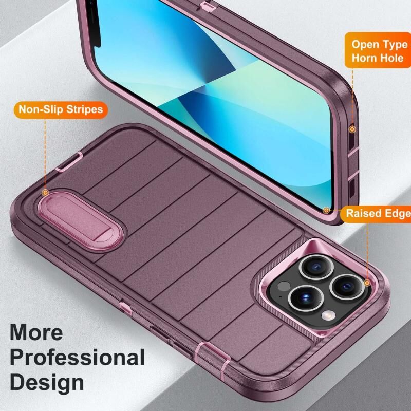Θήκη κινητού για iPhone 13 Pro Max Defender Gen2, ανθεκτική από πολυανθρακικό + σιλικόνη με βάση στήριξης (Μαύρο)