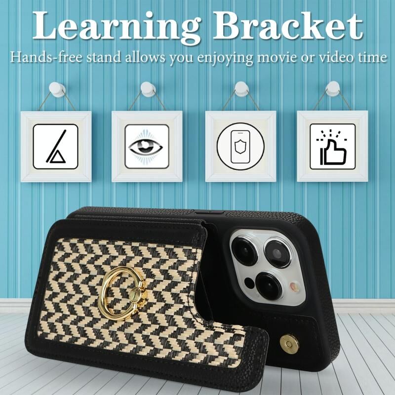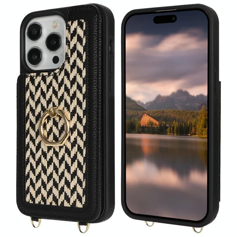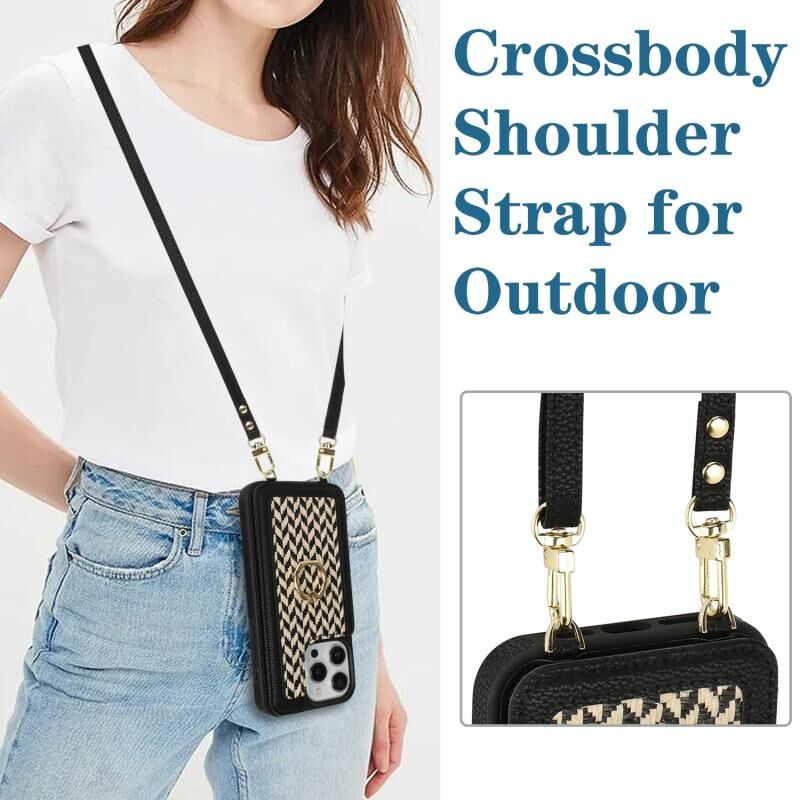 Θήκη κινητού τηλεφώνου με διπλή θήκη για κάρτες και πλήρη κάλυψη για iPhone 13 Pro Max με λουρί χιαστί (Μαύρο)