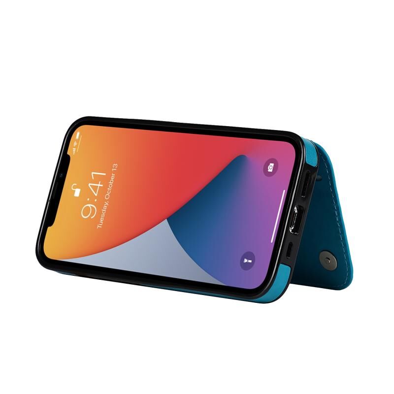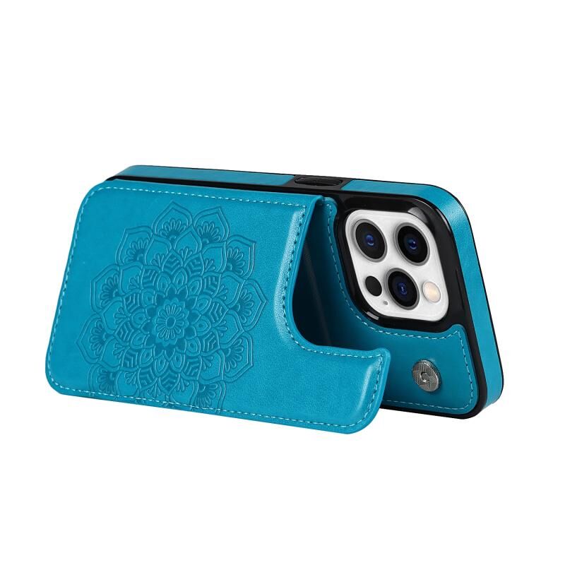 For iPhone 13 Pro Max Double Buckle Mandala Pattern PU+TPU Protective Case with Card Slots & Holder & Photo Frame (Blue)