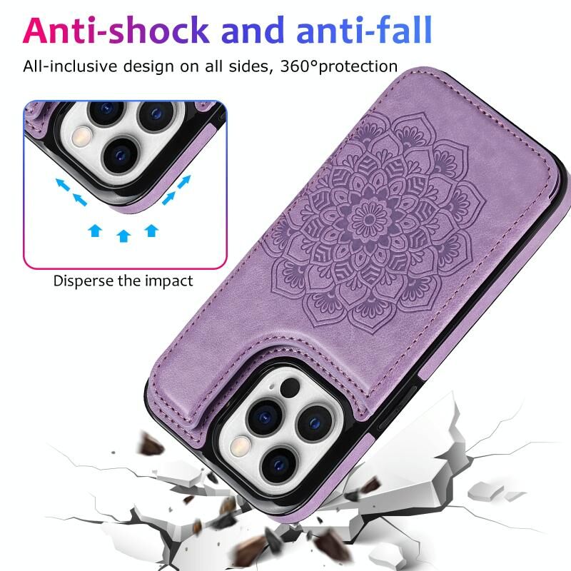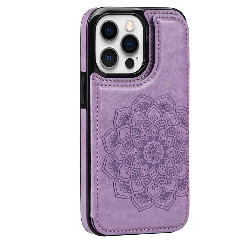 For iPhone 13 Pro Max Double Buckle Mandala Pattern PU+TPU Protective Case with Card Slots & Holder & Photo Frame (Purple)
