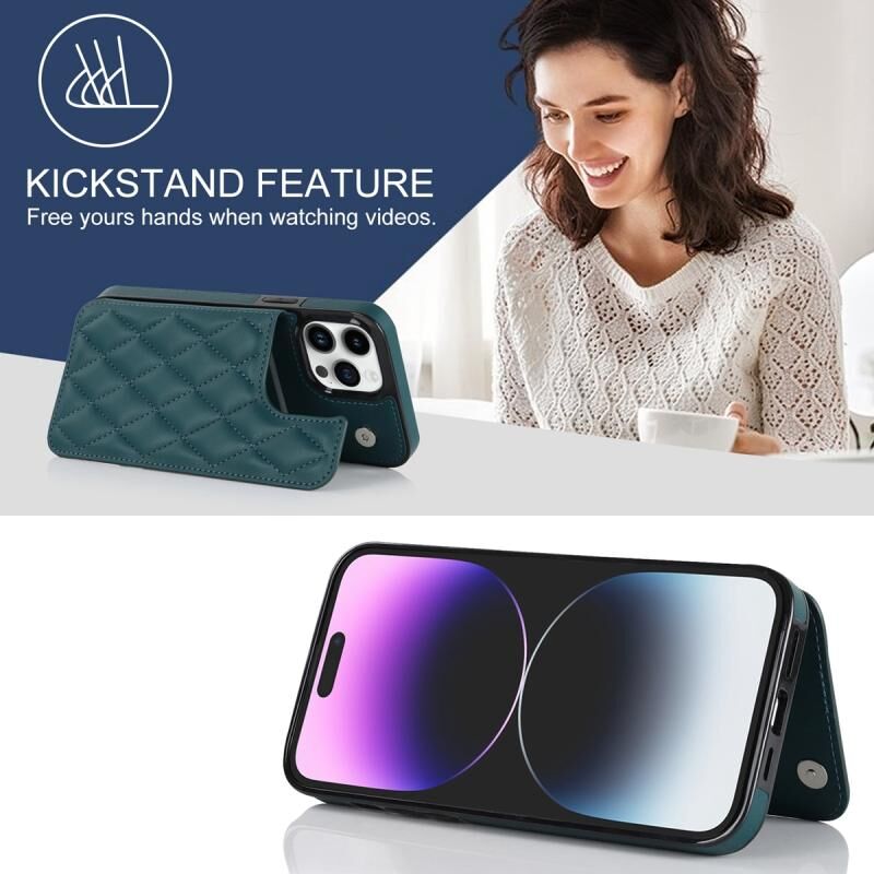 For iPhone 13 Pro Max Double Buckle Rhombic PU Leather Phone Case(Green)
