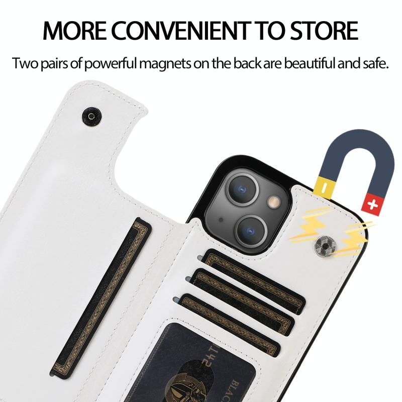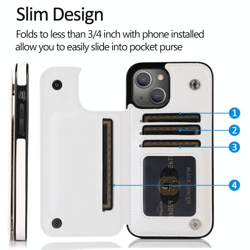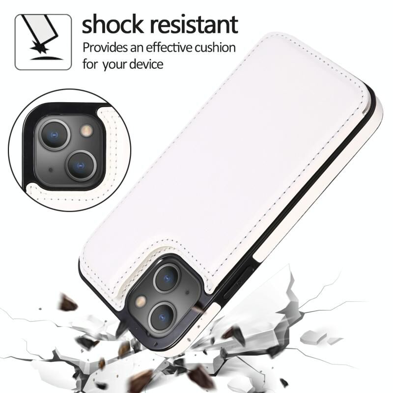 For iPhone 13 Pro Max Double Buckle Shockproof PU Protective Case with Card Slots & Holder (White)