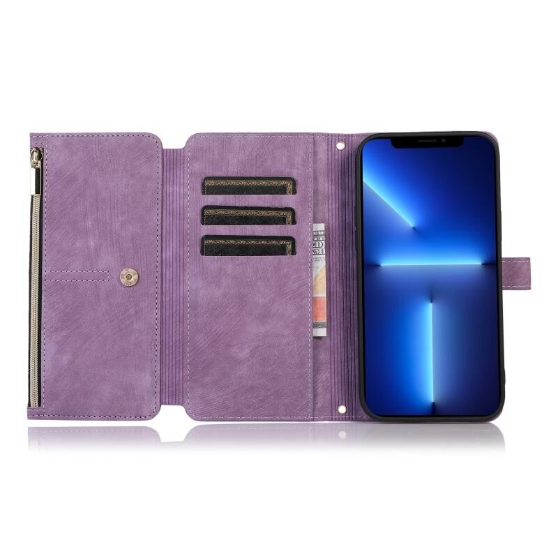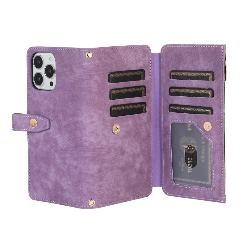 For iPhone 13 Pro Max Dream 9-Card Wallet Zipper Bag Leather Phone Case(Purple)