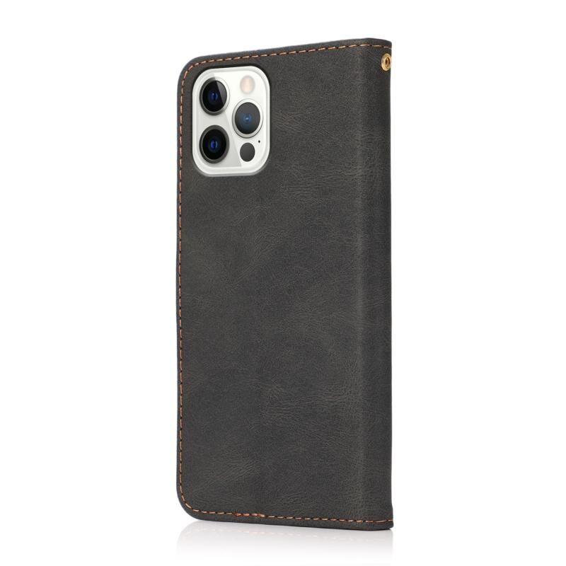 Θήκη Δερμάτινη Διπλής Χρωματικής Ραφής για iPhone 13 Pro Max (Μαύρο Καφέ)