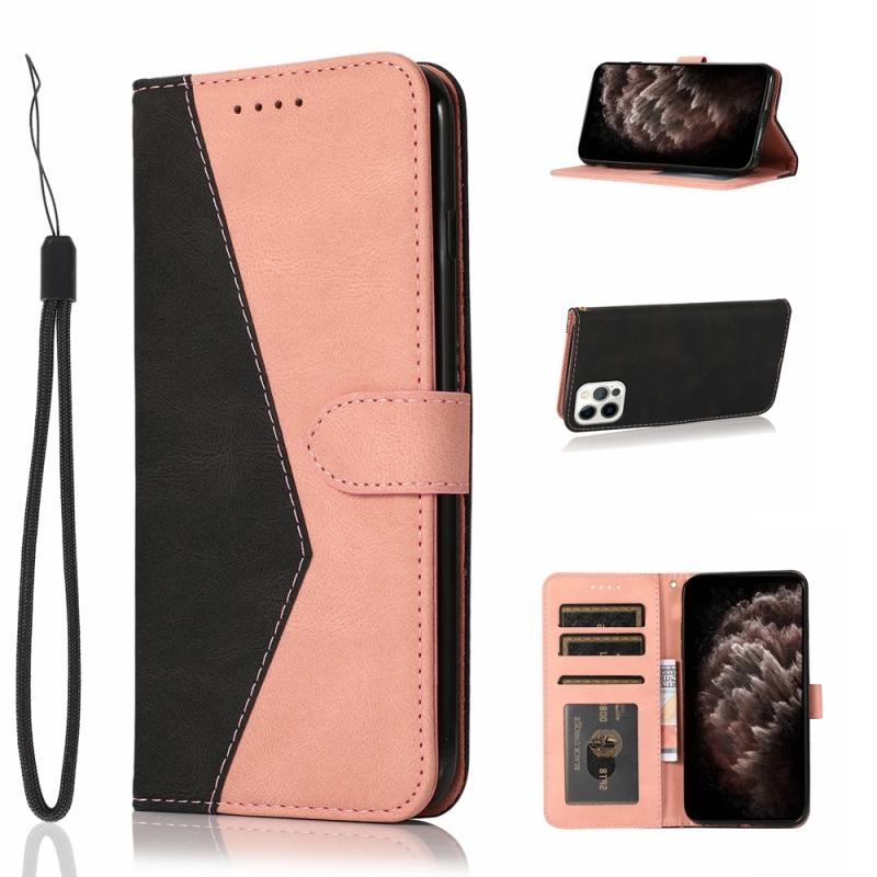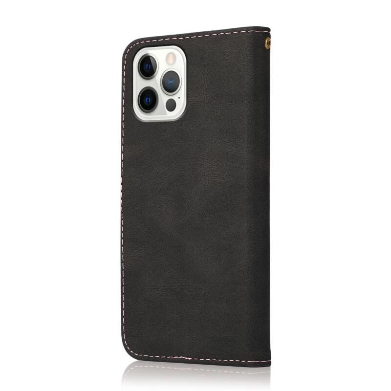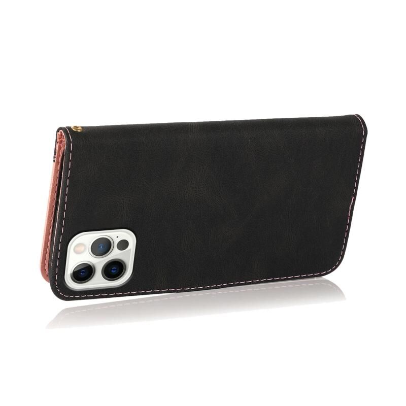 Θήκη Δερμάτινη Διπλής Χρωματικής Ραφής για iPhone 13 Pro Max (Μαύρο Ροζ Χρυσό)