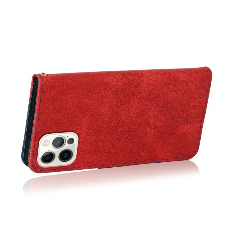 Θήκη Δερμάτινη Διπλής Χρωματικής Ραφής για iPhone 13 Pro Max (Κόκκινο Μπλε)