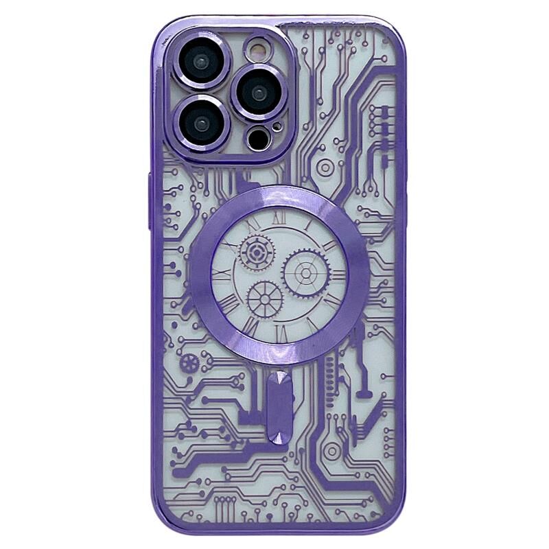 Θήκη τηλεφώνου MagSafe με σχέδιο ηλεκτρολυτικής πλακέτας κυκλώματος για iPhone 13 Pro Max (Purple)