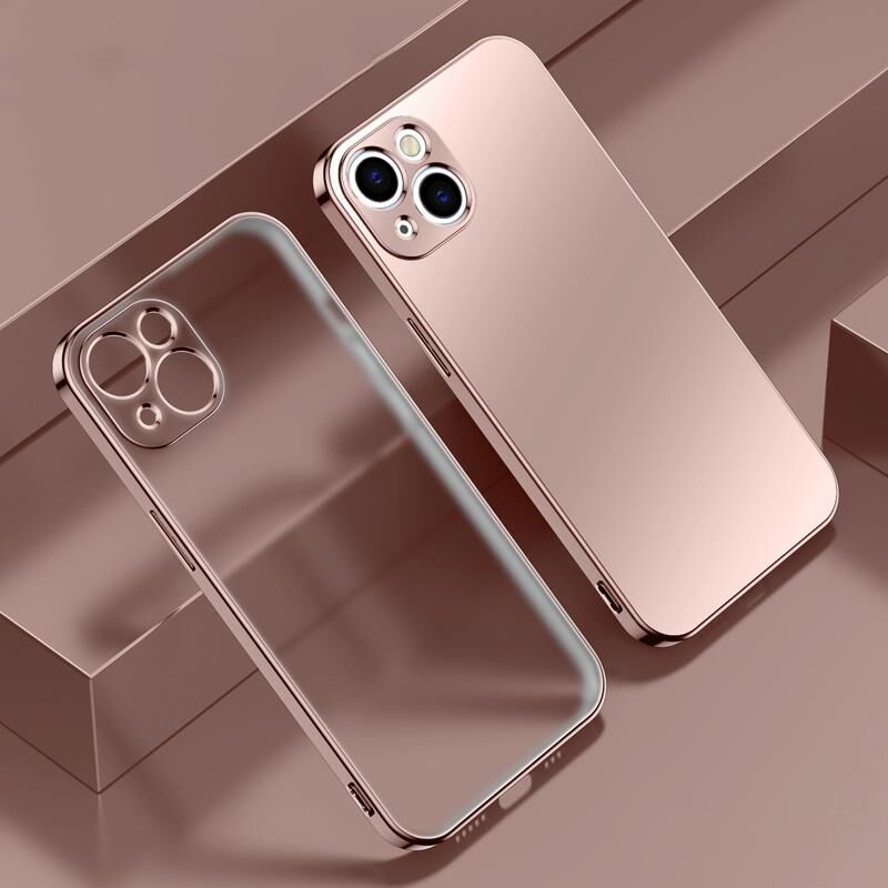 For iPhone 13 Pro Max Electroplated Edge Frosted TPU Shockproof Case (Pink Gold)