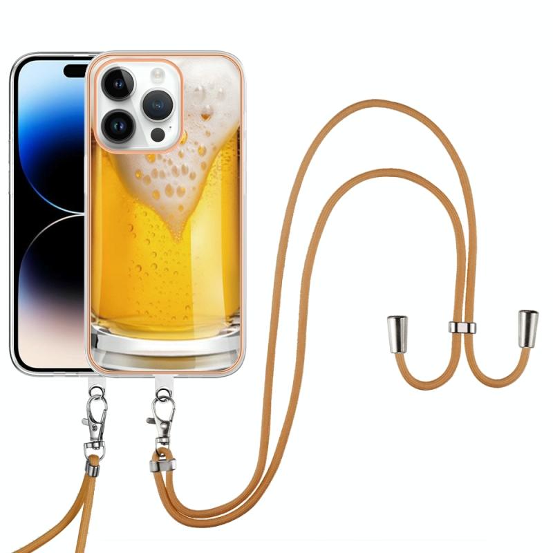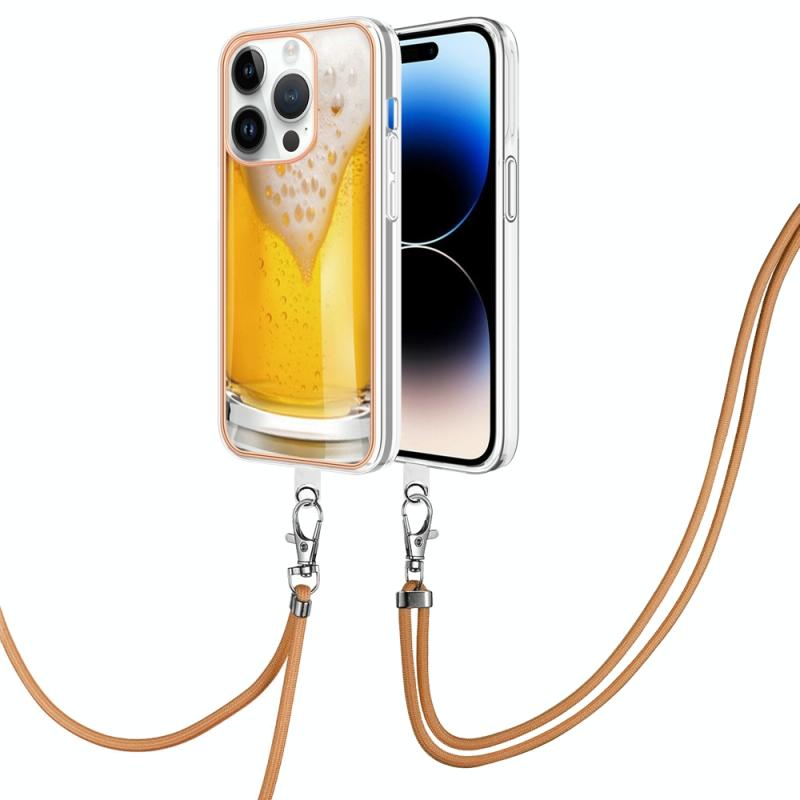 For iPhone 13 Pro Max Electroplating Dual-side IMD Phone Case with Lanyard(Draft Beer)