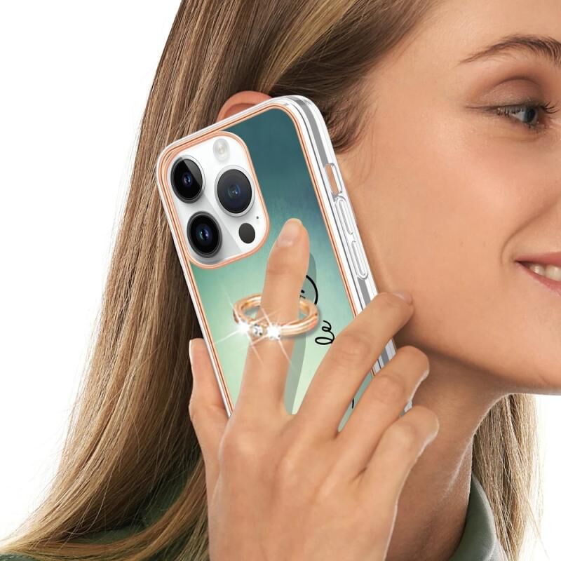 For iPhone 13 Pro Max Electroplating Dual-side IMD Phone Case with Ring Holder(Smile)
