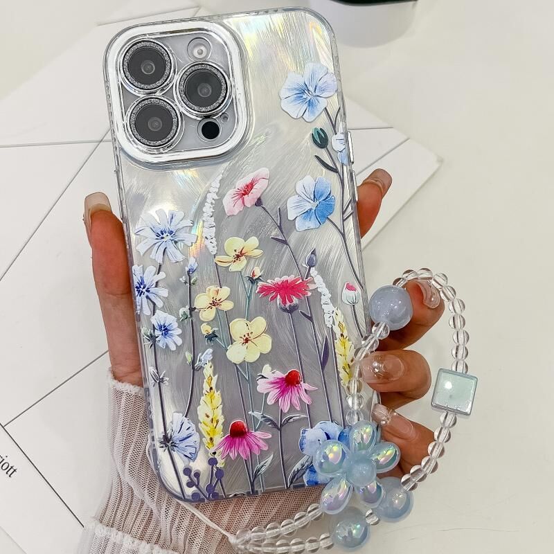 For iPhone 13 Pro Max Electroplating Flowers Plants Texture Wristband TPU Phone Case(Wildflower FL2)