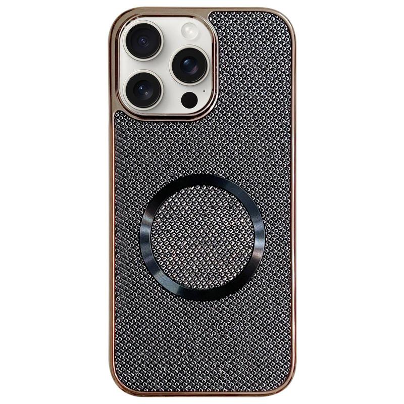 For iPhone 13 Pro Max Electroplating PC Glitter Grain MagSafe Phone Case(Black)