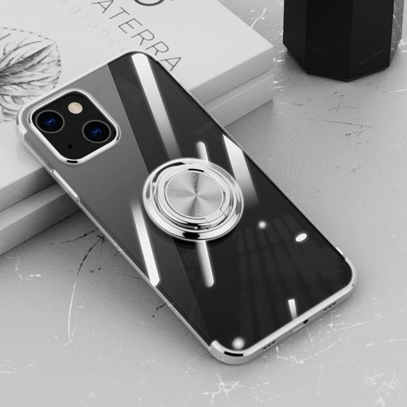 For iPhone 13 Pro Max Electroplating Silicone Shockproof Case with Ring Holder (Silver)