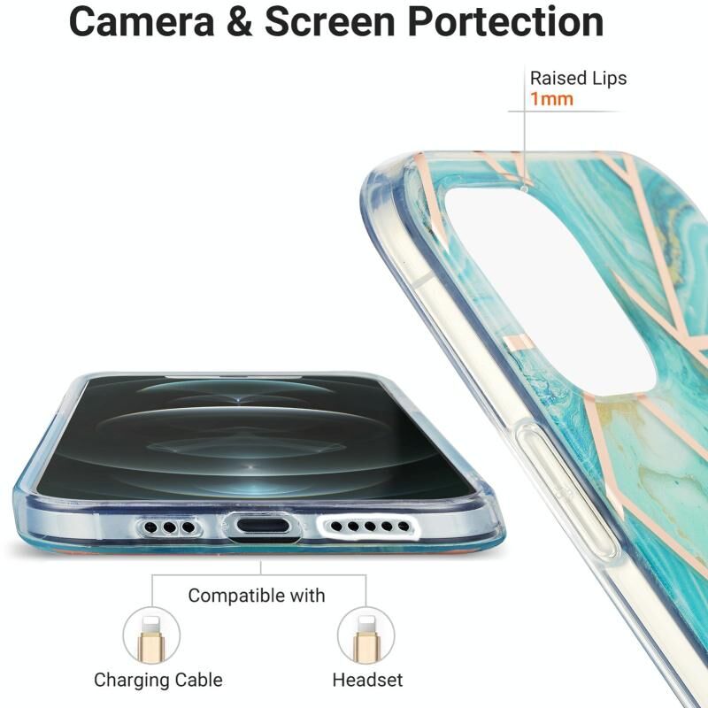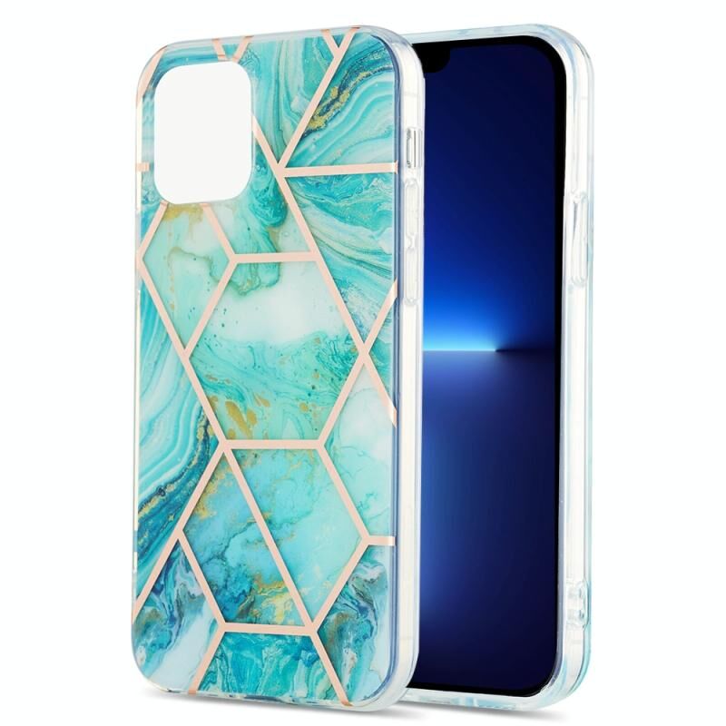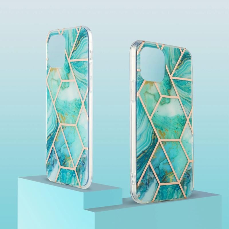 For iPhone 13 Pro Max Electroplating Splicing Marble Flower Pattern Dual-side IMD TPU Shockproof Case (Blue)