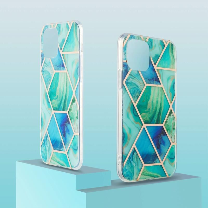 For iPhone 13 Pro Max Electroplating Splicing Marble Flower Pattern Dual-side IMD TPU Shockproof Case (Green)