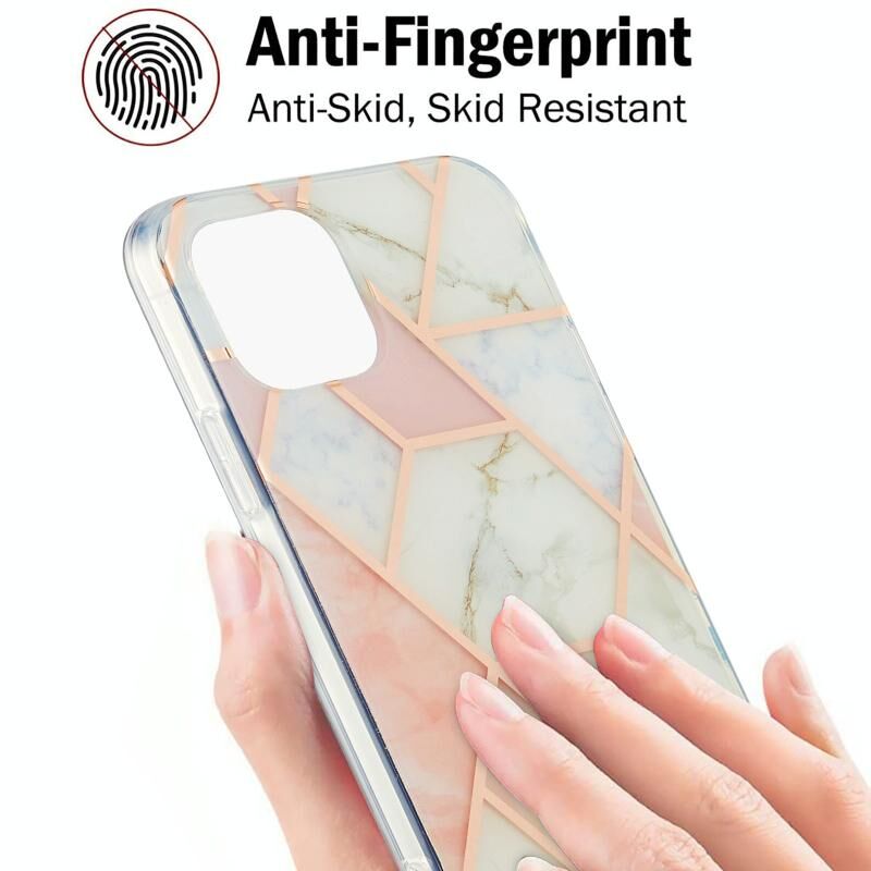 For iPhone 13 Pro Max Electroplating Splicing Marble Flower Pattern Dual-side IMD TPU Shockproof Case (Pink White)