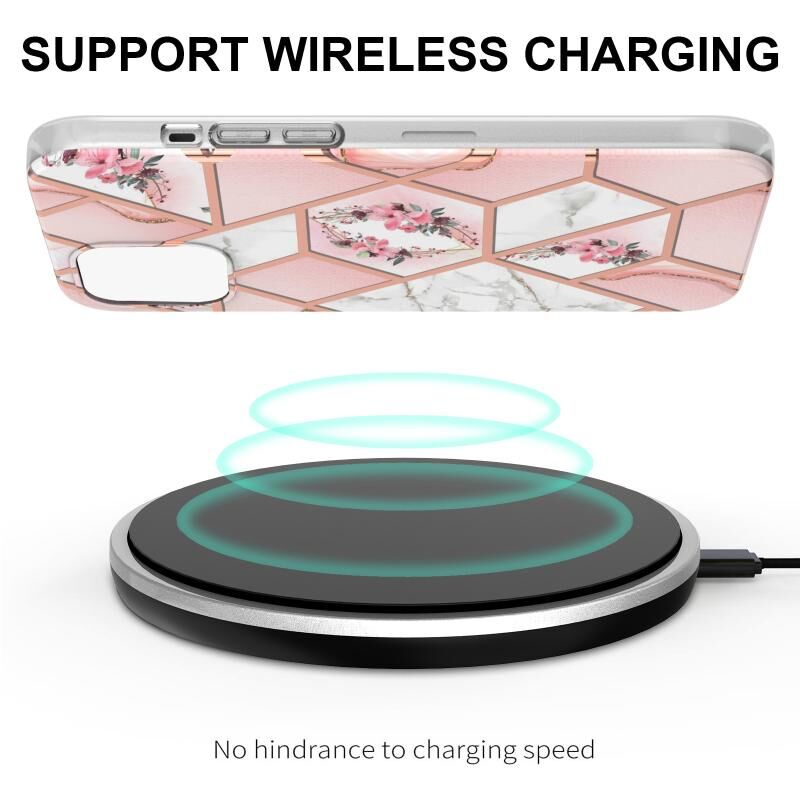 For iPhone 13 Pro Max Electroplating Splicing Marble Flower Pattern TPU Shockproof Case (Pink Flower)