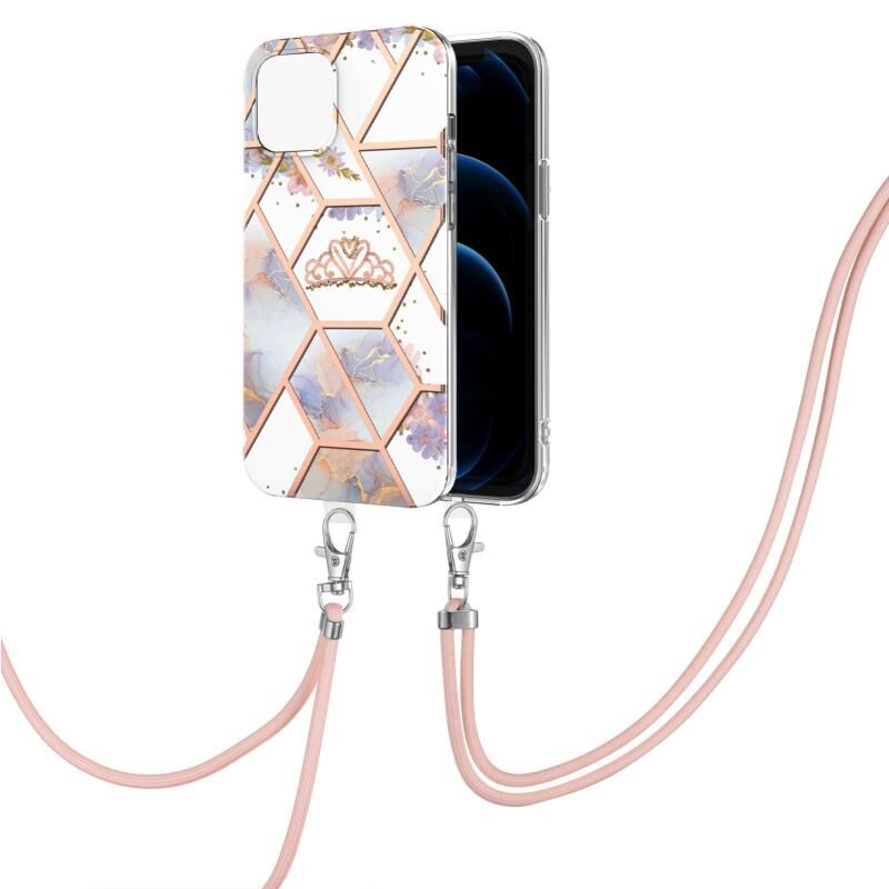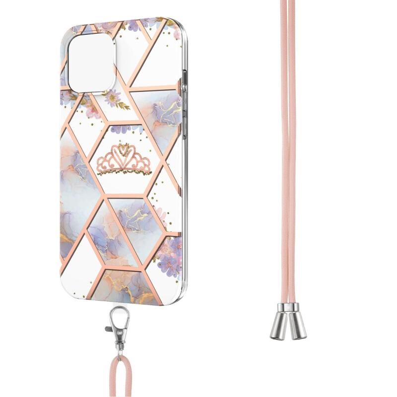 For iPhone 13 Pro Max Electroplating Splicing Marble Flower Pattern TPU Shockproof Case with Lanyard (Imperial Crown)