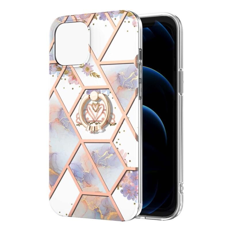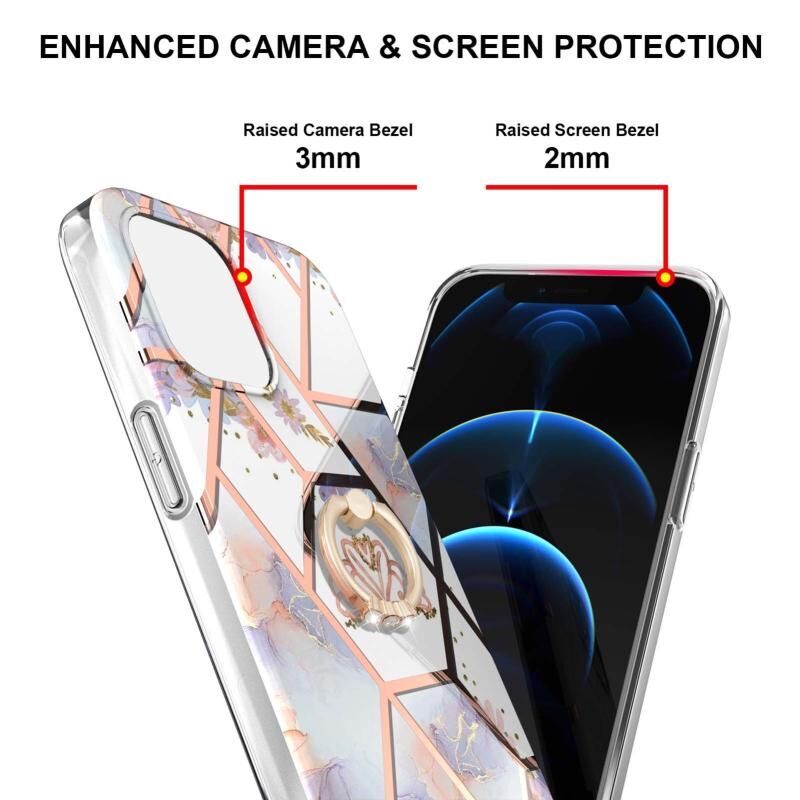 For iPhone 13 Pro Max Electroplating Splicing Marble Flower Pattern TPU Shockproof Case with Rhinestone Ring Holder (Imperial Crown)