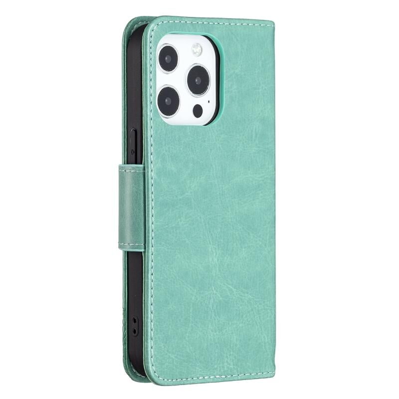 For iPhone 13 Pro Max Embossing Two Butterflies Pattern Horizontal Flip PU Leather Case with Holder & Card Slot & Wallet & Lanyard (Green)