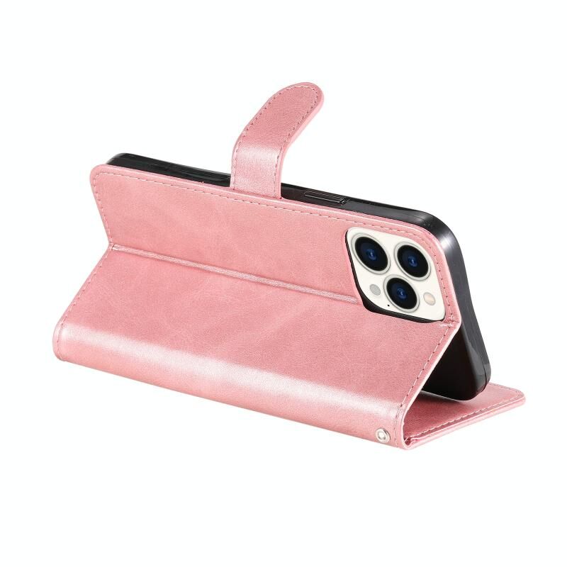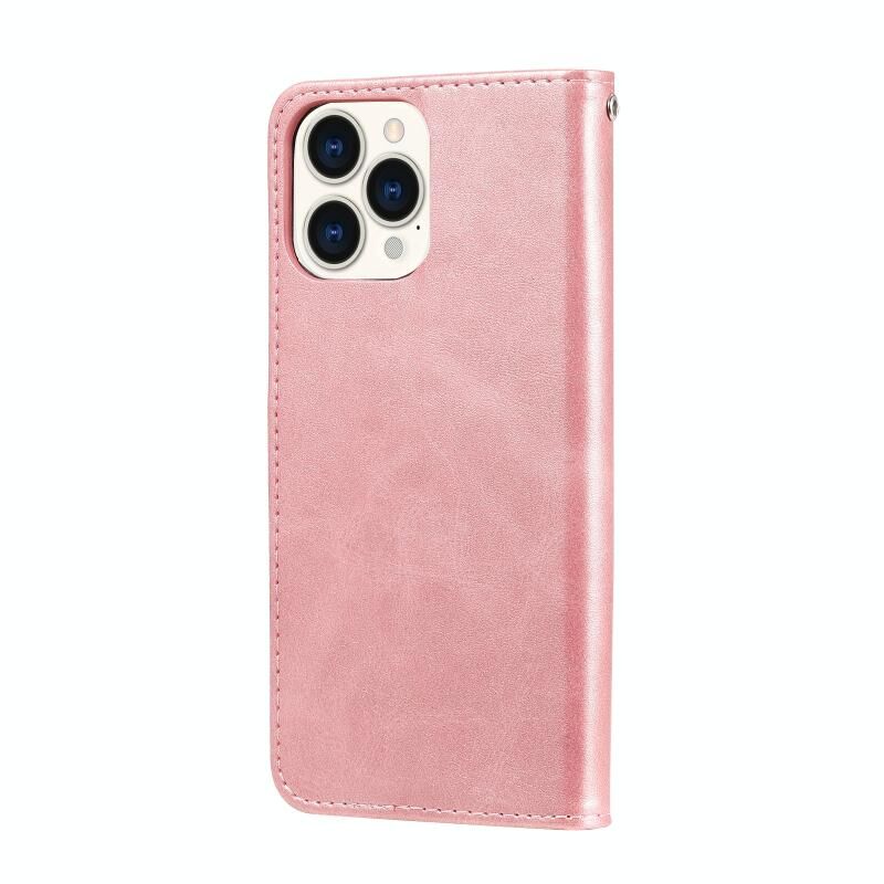 For iPhone 13 Pro Max Fashion Calf Texture Zipper Horizontal Flip Leather Case with Stand & Card Slots & Wallet Function (Rose Gold)