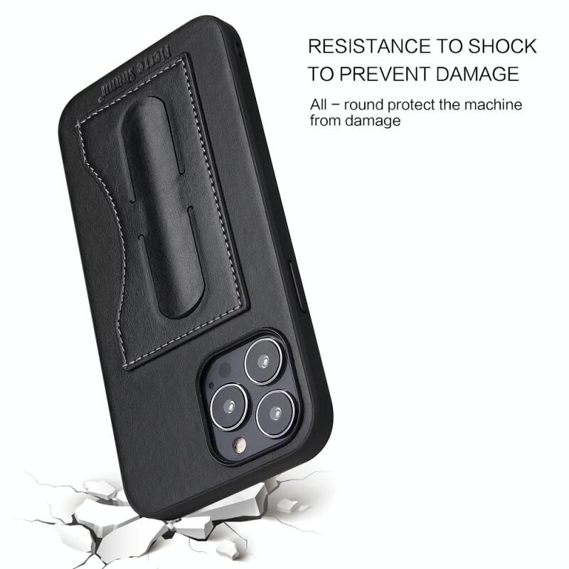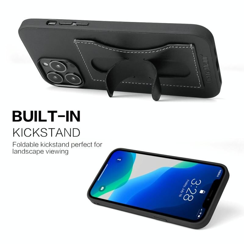 For iPhone 13 Pro Max Fierre Shann Full Coverage Protective Leather Case with Holder & Card Slot (Black) (FIERRE SHANN)