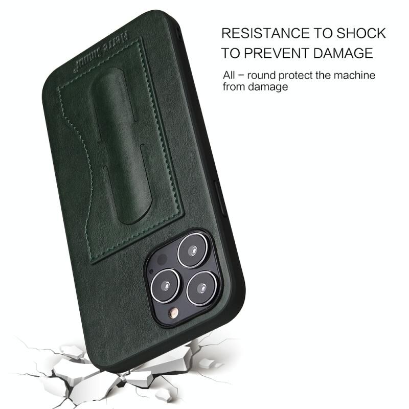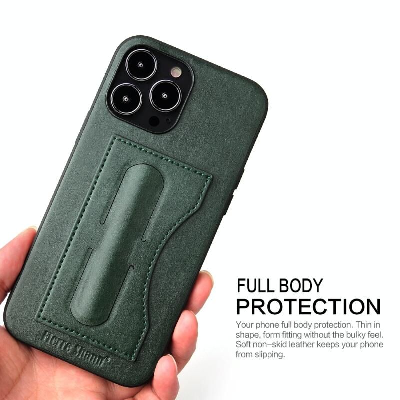 For iPhone 13 Pro Max Fierre Shann Full Coverage Protective Leather Case with Holder & Card Slot (Green) (FIERRE SHANN)