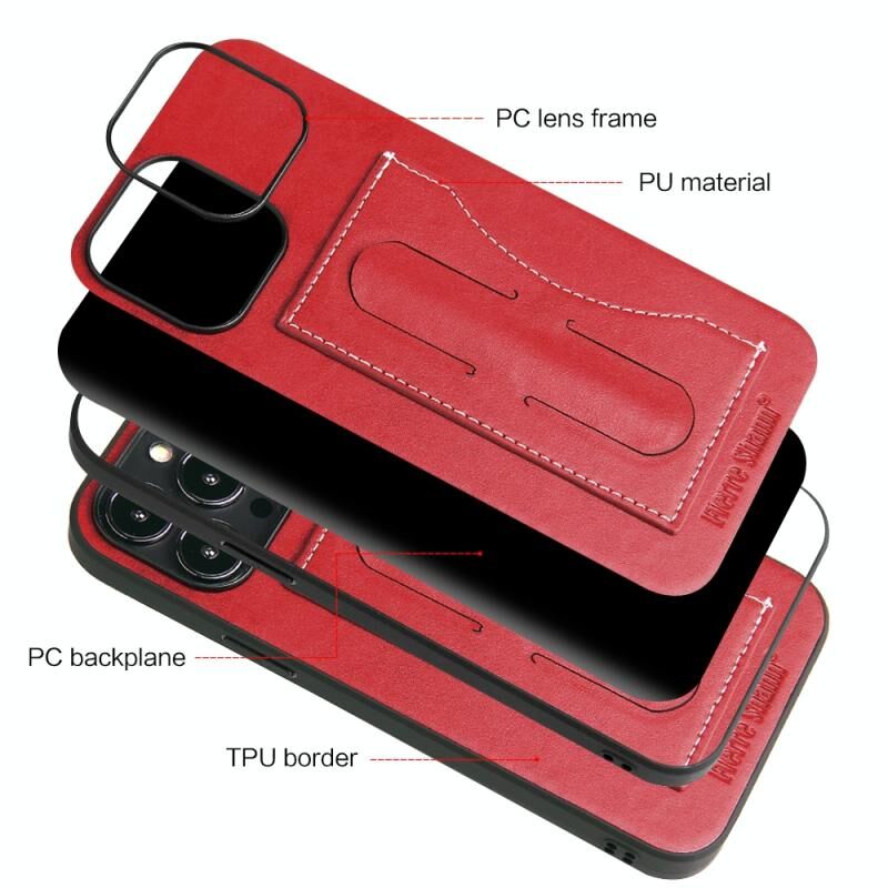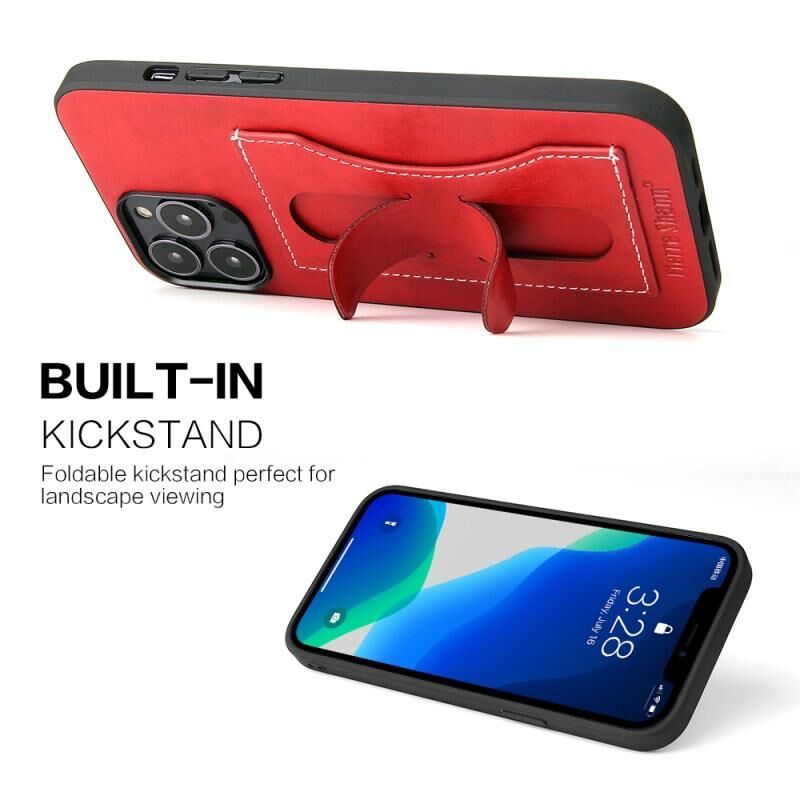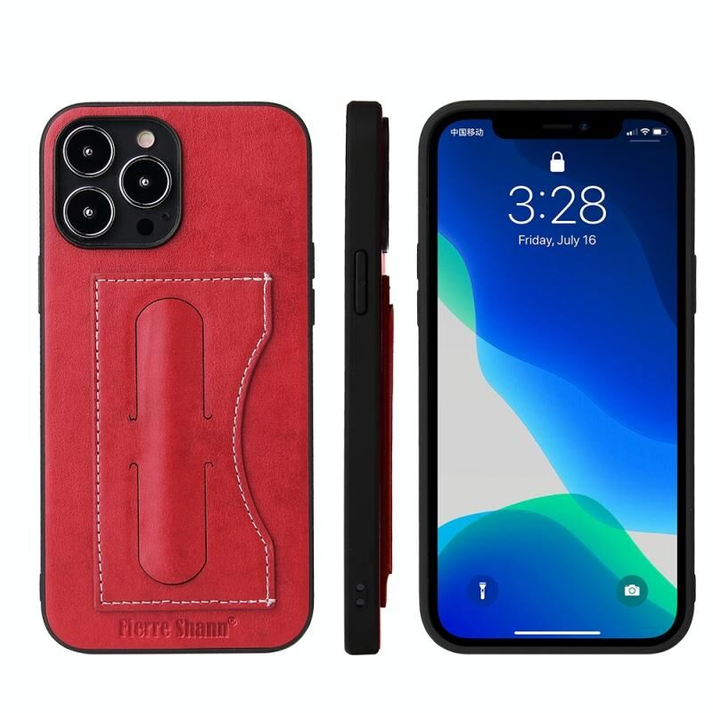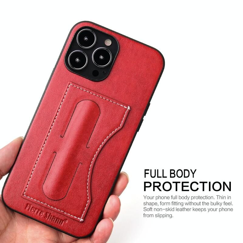 For iPhone 13 Pro Max Fierre Shann Full Coverage Protective Leather Case with Holder & Card Slot (Red) (FIERRE SHANN)
