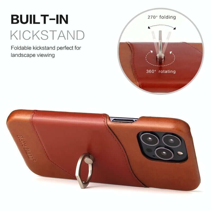 For iPhone 13 Pro Max Fierre Shann Oil Wax Texture Genuine Leather Back Cover Case with 360 Degree Rotation Holder & Card Slot (Brown) (FIERRE SHANN)