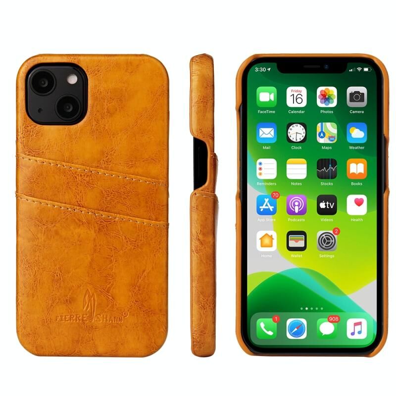 For iPhone 13 Pro Max Fierre Shann Retro Oil Wax Texture PU Leather Case with Card Slots (Yellow) (FIERRE SHANN)