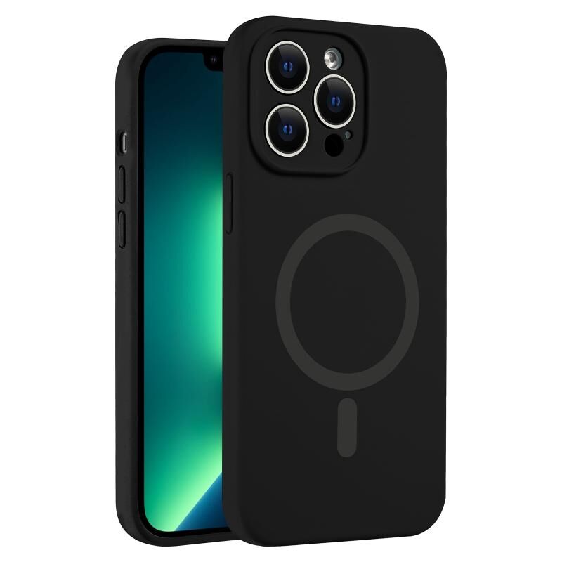 For iPhone 13 Pro Max Fine Hole Pure Color Liquid Silicone MagSafe Phone Case(Black)