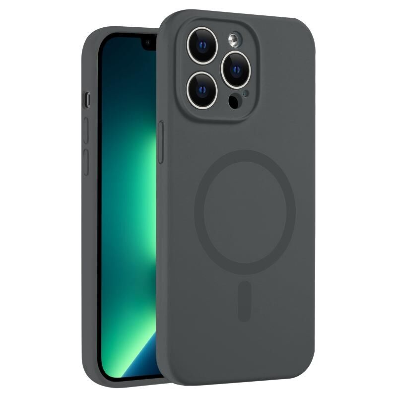 For iPhone 13 Pro Max Fine Hole Pure Color Liquid Silicone MagSafe Phone Case(Coal Grey)
