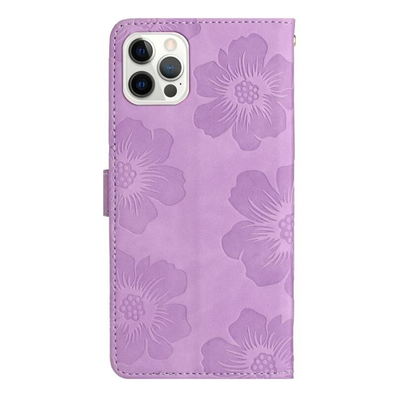 For iPhone 13 Pro Max Flower Embossing Pattern Leather Phone Case(Purple)